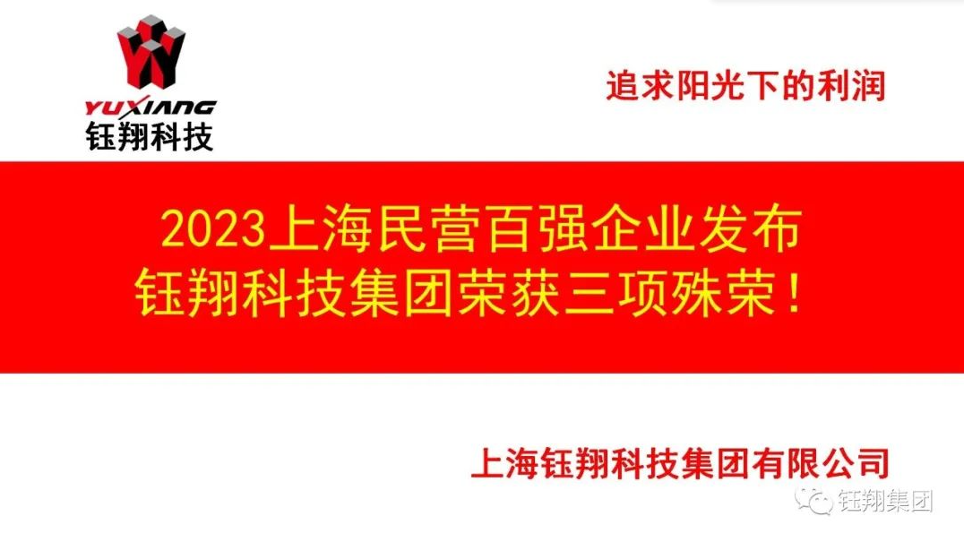 喜訊丨2023上海民營百強企業發布 鈺翔科技集團榮獲三項殊榮!